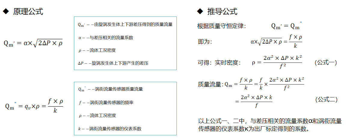 根據(jù)柏努利方程,渦街流量傳感器內(nèi)的旋渦發(fā)生體前后輸出的差壓信號(hào)與流體的密度成正比。